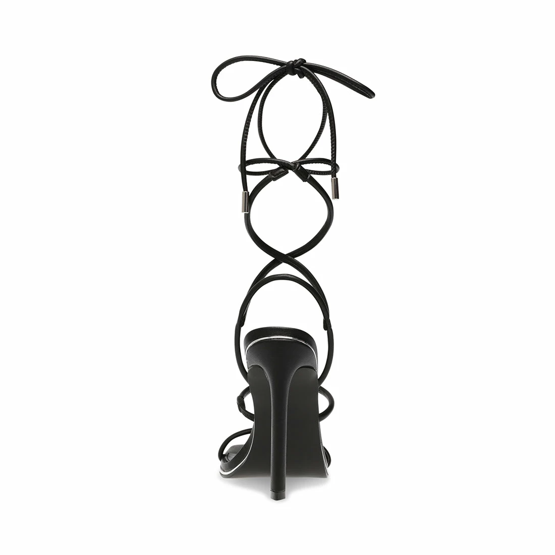 Make a strappy statement in UNFOLD โ a sexy little sandal with an of-the-moment square toe, stiletto heel and wraparound laces that climb the leg for an effortlessly seductive look.ย