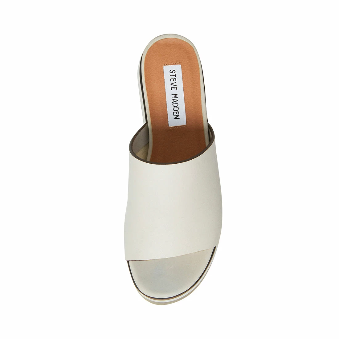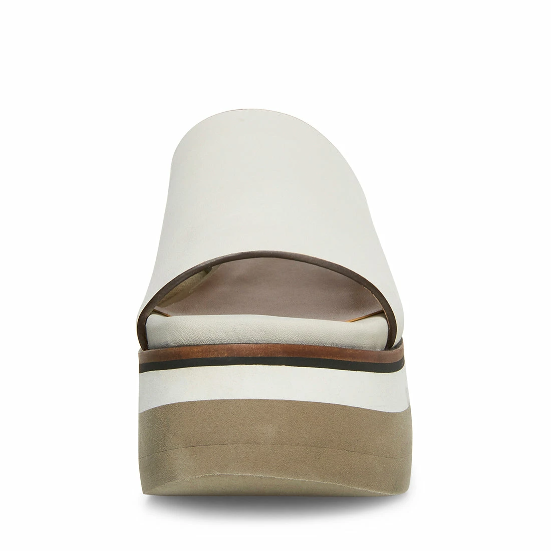 Sleek lines, tasteful color blocking and a raised vamp distinguish this frame-boosting slide, which offers major lift via a stacked platform sole.ย