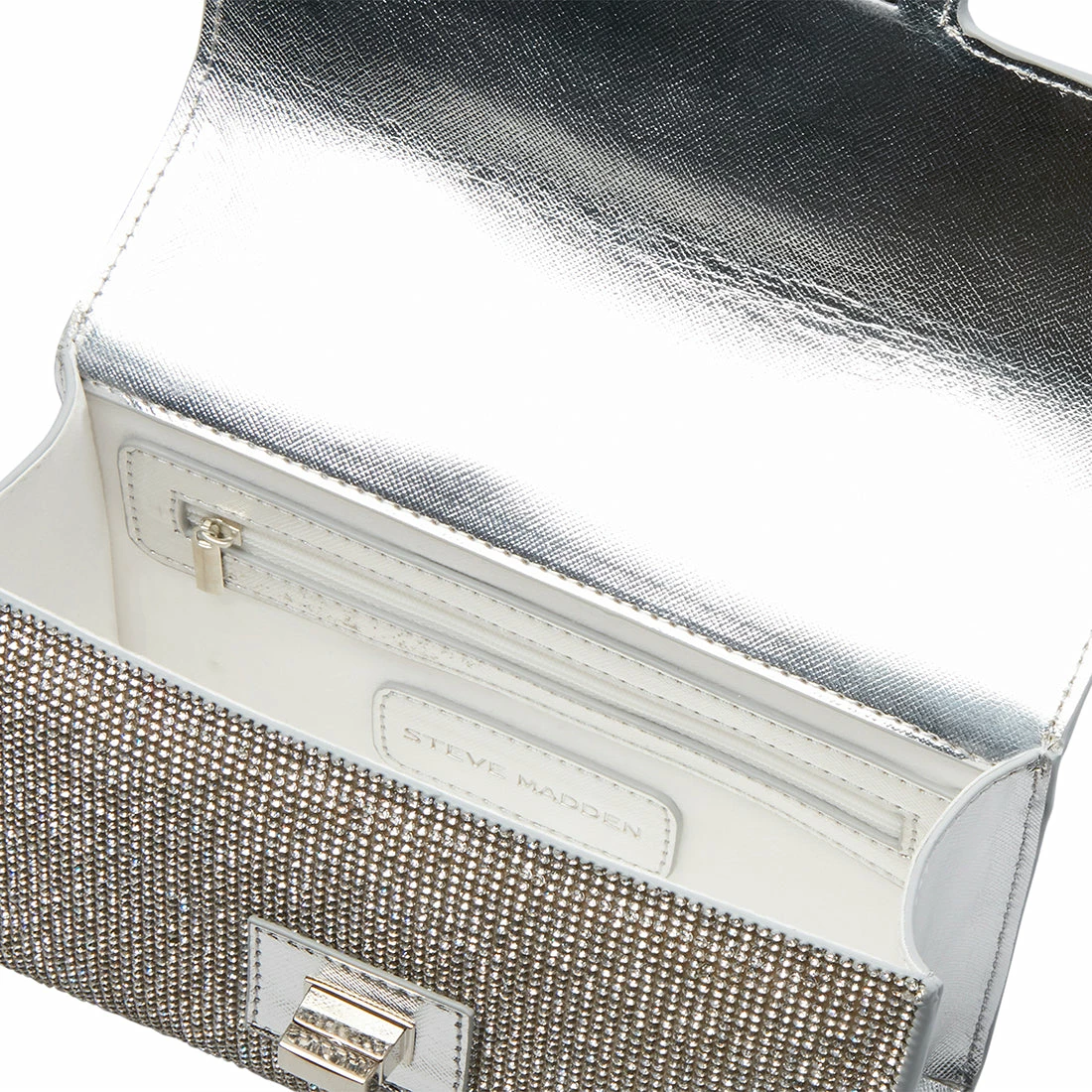 Suspended from a chain crossbody strap and blanketed in sparkling rhinestones, BWONDERS is a flap bag with flair! Haul essentials in this eye-catching carrier to glam-up any ensemble.ย