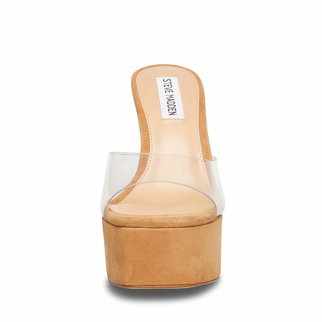 Channel the disco queen inside of you with KACIE. We’re loving this platform sandal, featuring a clear strap and flared heelโwear yours with flared jeans for a retro 70s-inspired look