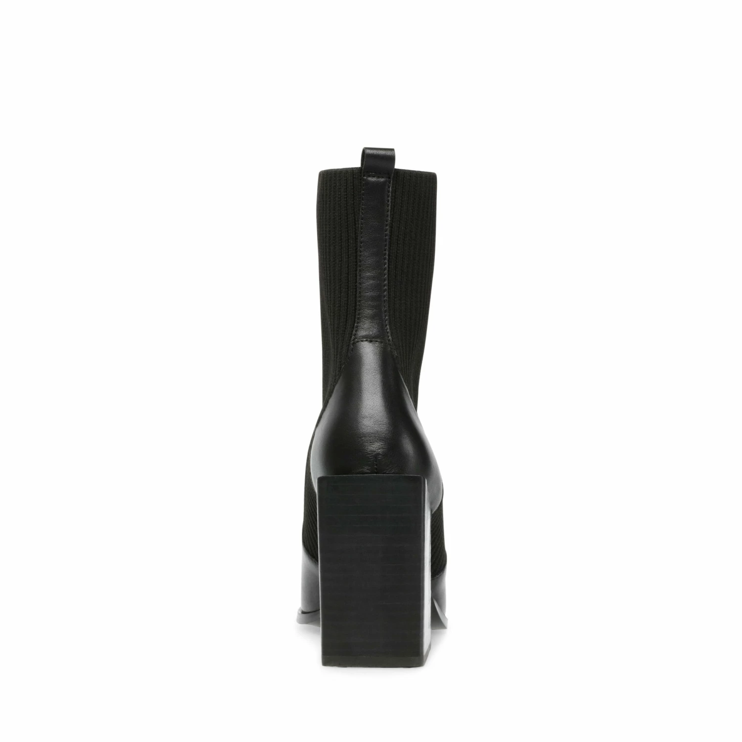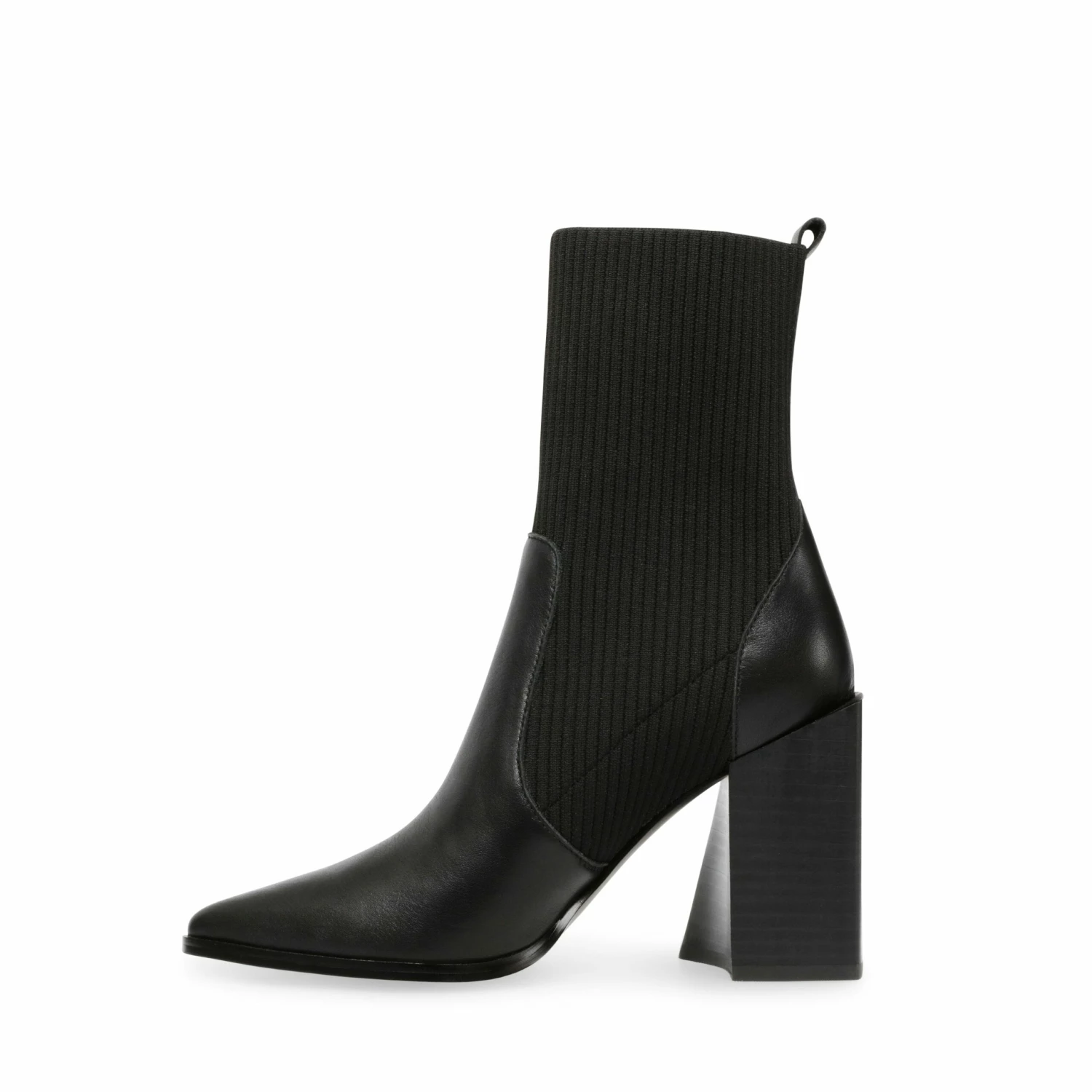 Sharp lines and an avant-garde angular heel give this boot a killer look, while a soft knit shaft allows for easy pull-on entry. A fierce finishing touch for any fashion-lovinโ lady.ย
