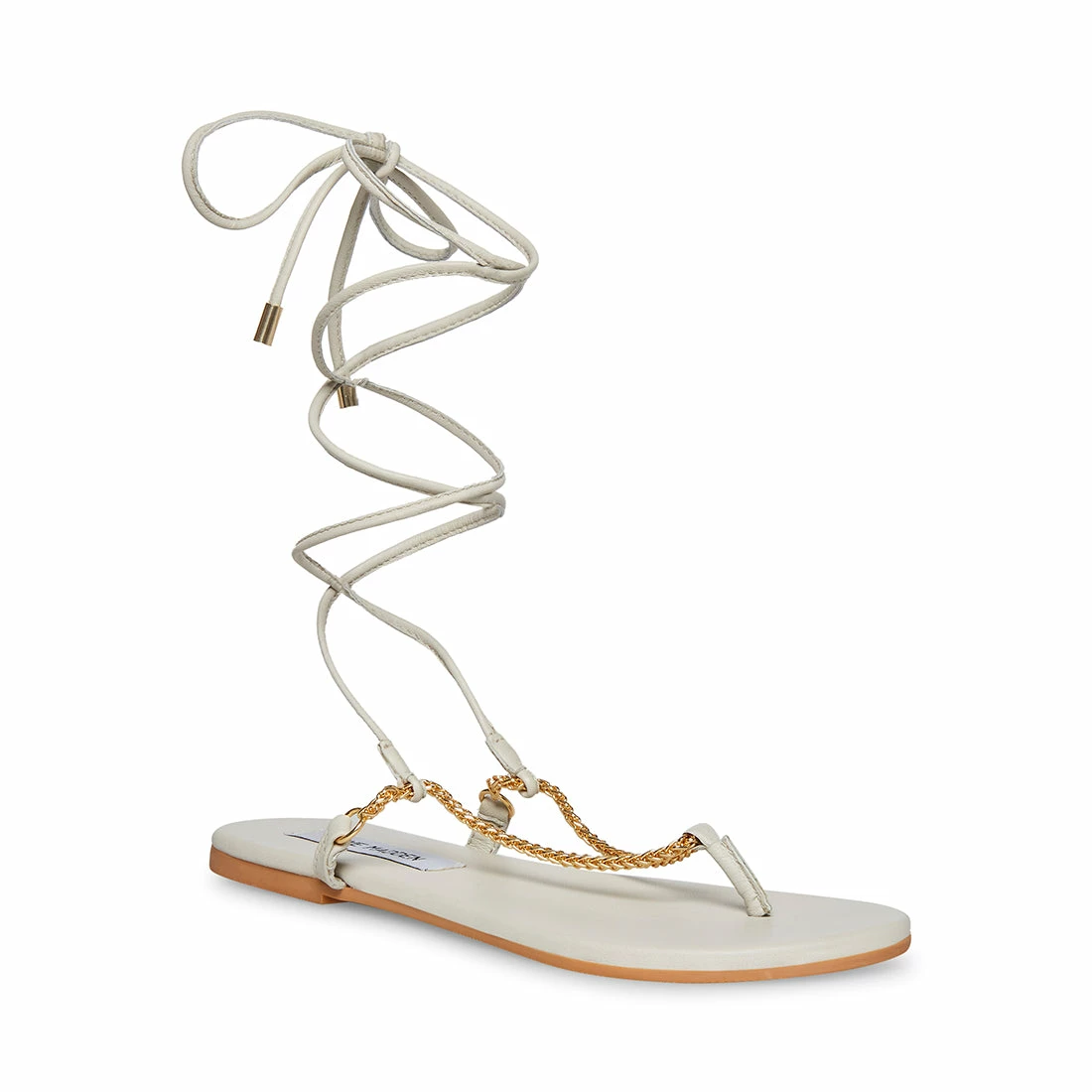 Nail that whole sun kissed Grecian goddess look in TYRA. This stunning flat thong sandal features chain details and laces that tie up your leg.