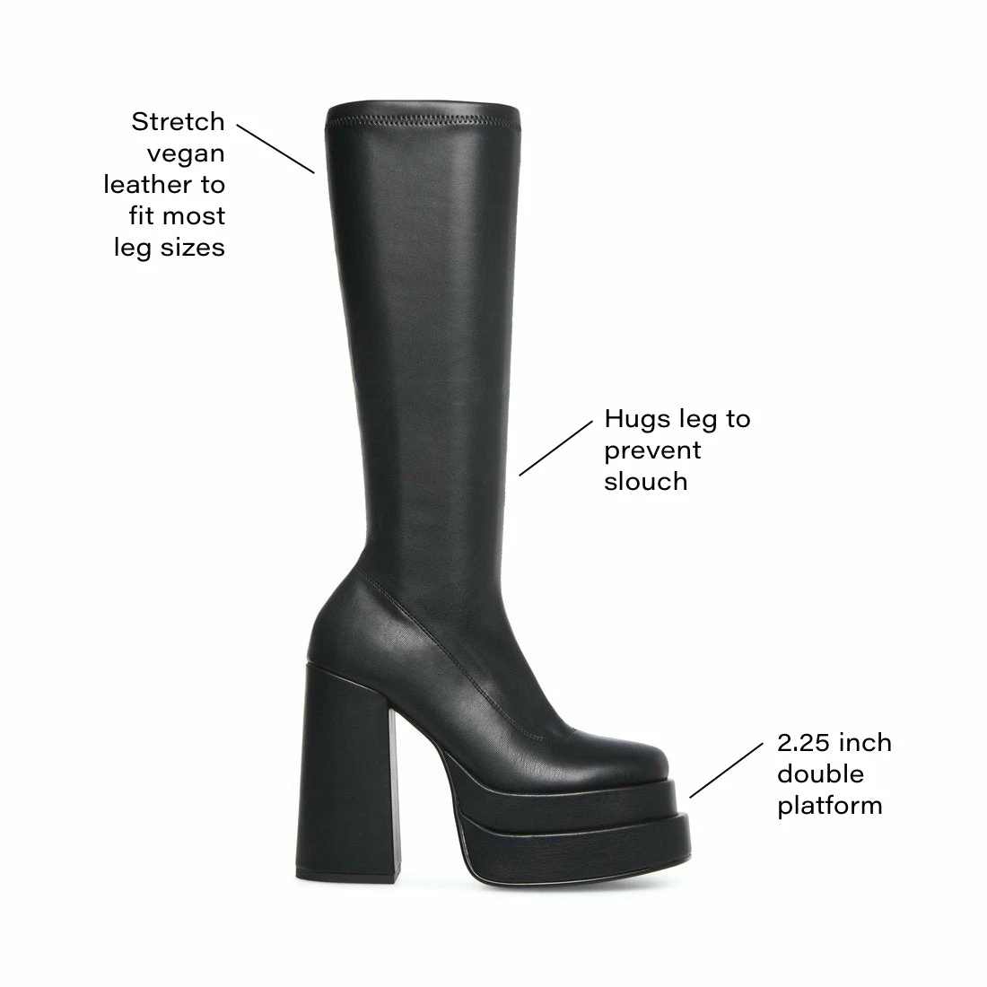 Disco queens unite, this is the platform boot youโre about to become obsessed with. An exaggerated 70s-inspired silhouette feels modern when worn with midi skirts and dresses.