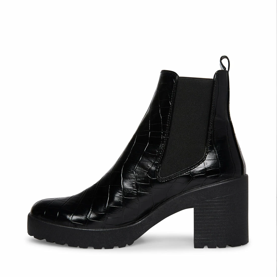 Croc-embossed texture adds luxury to the everyday comfort of this cropped Chelsea boot, also featuring elastic goring for pull-on entry and an easy-to-wear chunky heel.