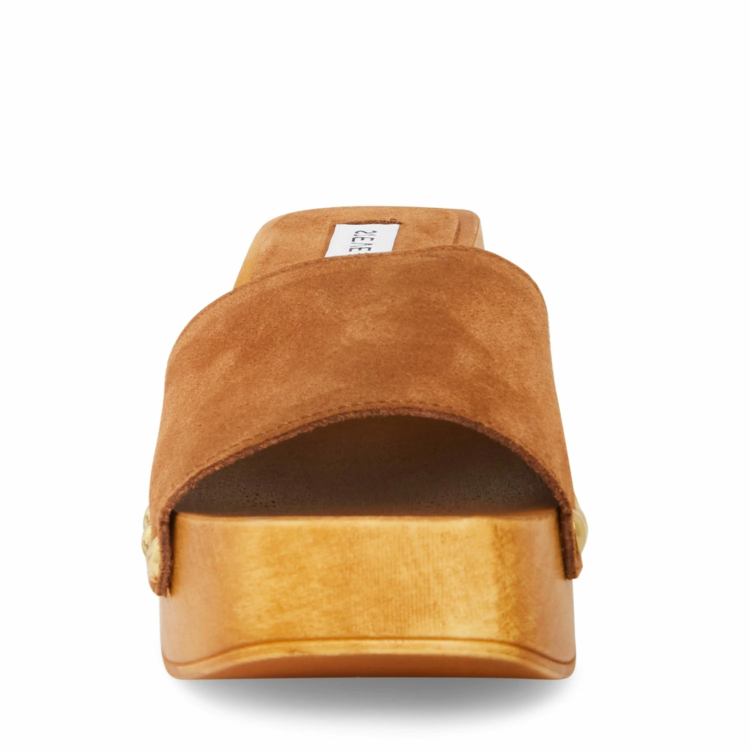 Slide into IZZY, a SM exclusive that’s sure to turn heads. Set on a woodgrain platform sole, a luxe suede strap and footbed add a cool contrast.