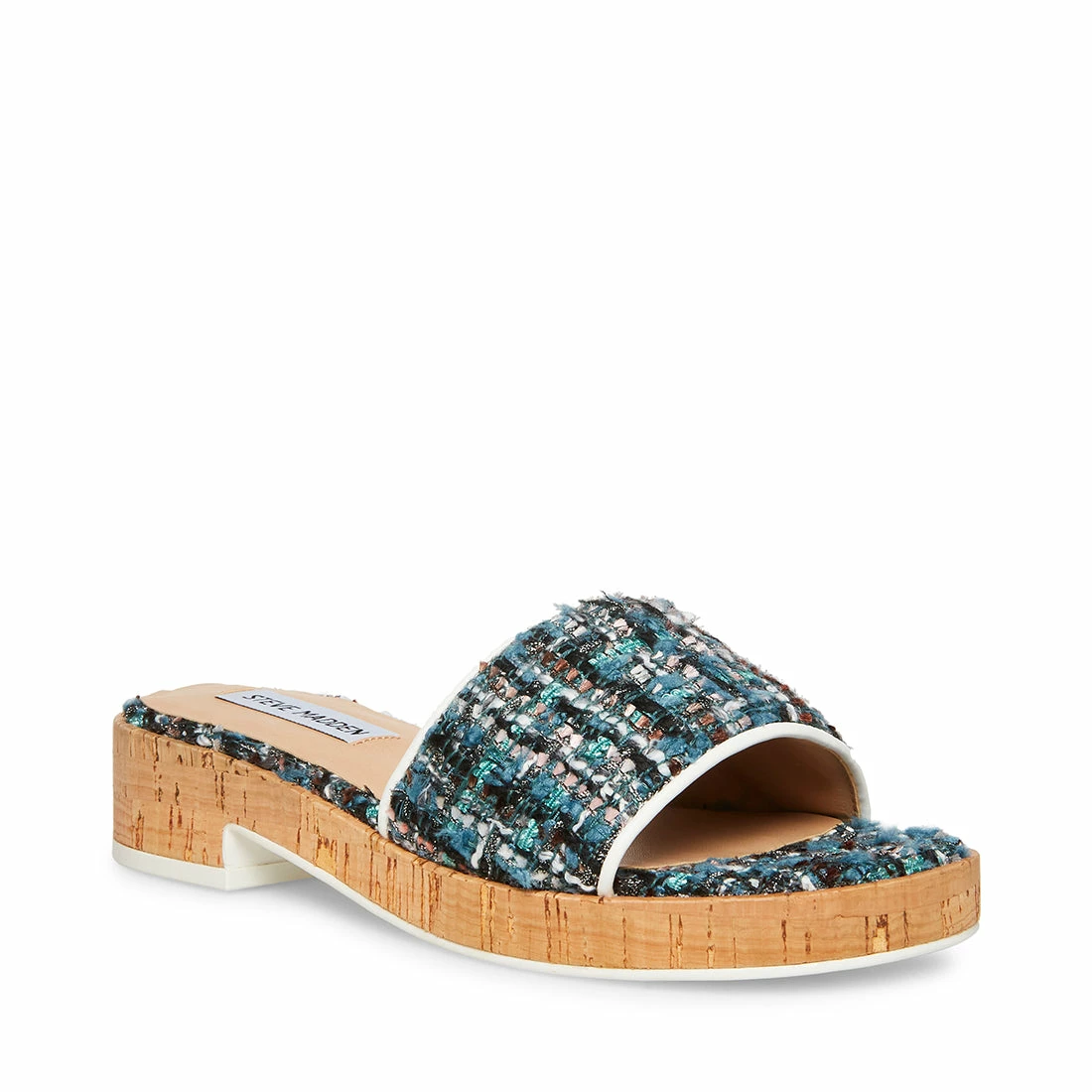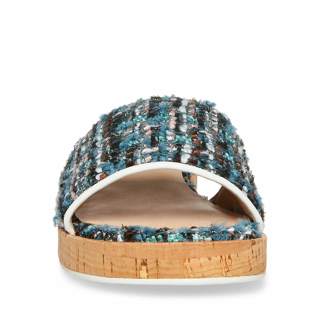 For an easy way to bring a chic appeal to your look, ARIA is your girl. These slip-on sandals are set on a low heel designed from natural cork material.