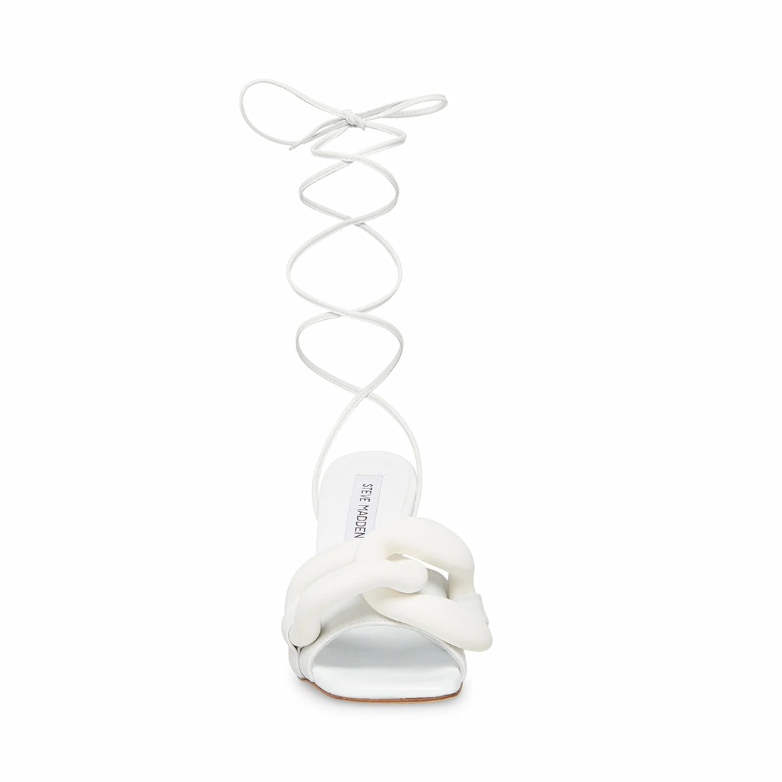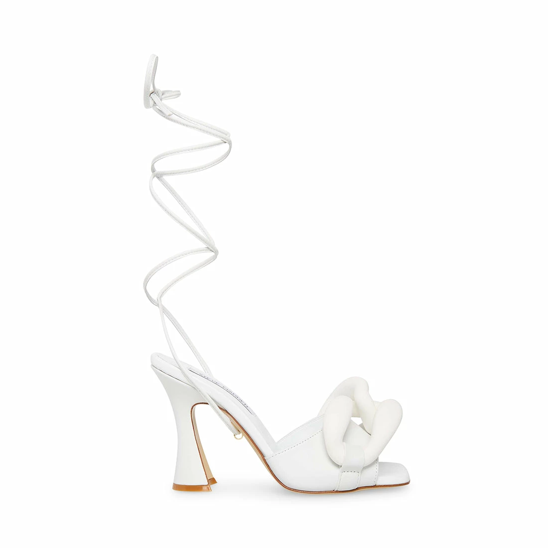 Youโll want to dress from the bottom up with CASSY. This flirty lace-up sandal features chunky chain details and a chic flared heel.