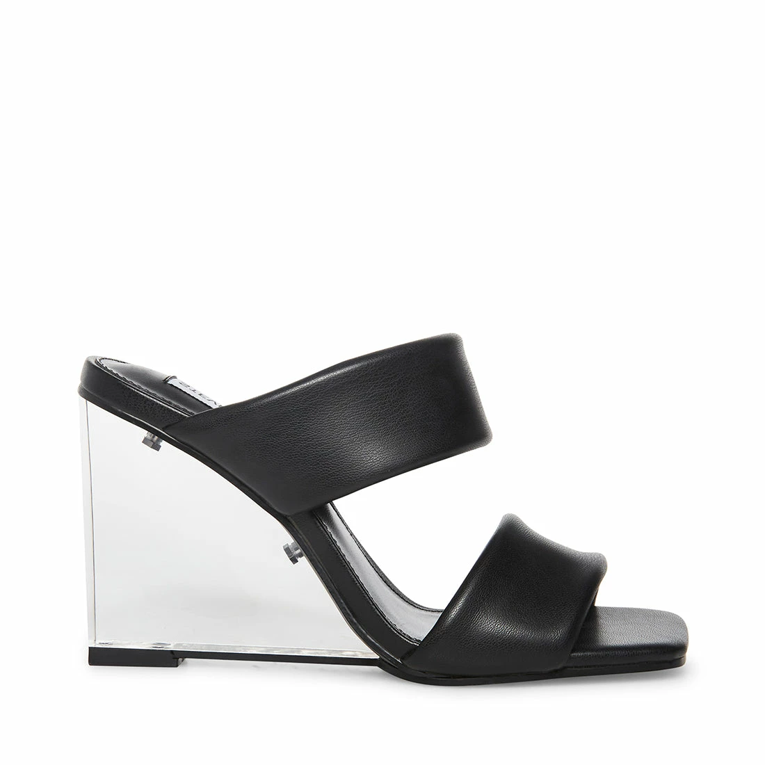Bring a fresh take to summer looks in ISA. A classic strappy sandal features a clear wedge and a square toe for a modern appeal.